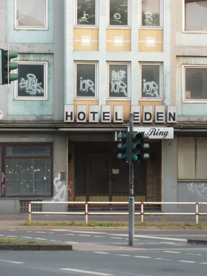 sentimentale absteige und zentrum der welt,am laden vorbei schlendert ein mann im kaftan die alleestraße längs