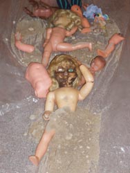 El camp de nines refleja y interpreta el escenario de un campo de La Galera con alcachofas y espantajos en forma de muñecas. La pintura metafisica tambien utiliza el simbolo del maniquino.