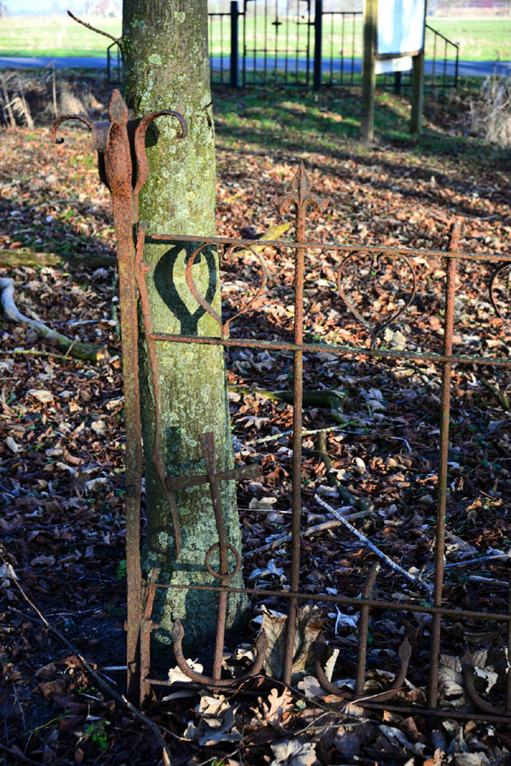 Ich breche ab und steige zwischen Grabsteinen und Umrandungen die Warft herab zum Friedhofseingang. Eine schmiedeeiserne Ranke wirft einen Schatten in Herzform auf einen Baumstamm dahinter. Ich messe diesem Schattenspiel einen Sinn bei und muss lächeln.
