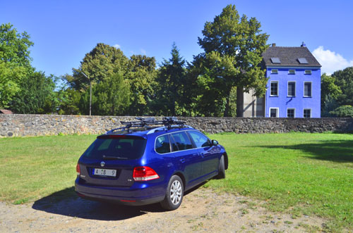 könnten die Hymnen zu diesesm Foto sein. Als Kommentar ist vielleicht auch noch das ewige Blau und Grün beißen sich möglich, von Goethes Farbenlehre bestätigt.Bei diesem Motiv reizen sich die Blau- und Grünwerte. Wolkenweiß und Schattendunkel kontrastieren auch ein wenig und dann ist da noch das TÜV-abgenommene Bremslichtrot, das sich frech in den Vordergrund drängt. Was fehlt, ist vielleicht ein gelbes Urinfläschchen im Fordergrund, um die Farbanforderungen von Dr. Paletti zu erfüllen.