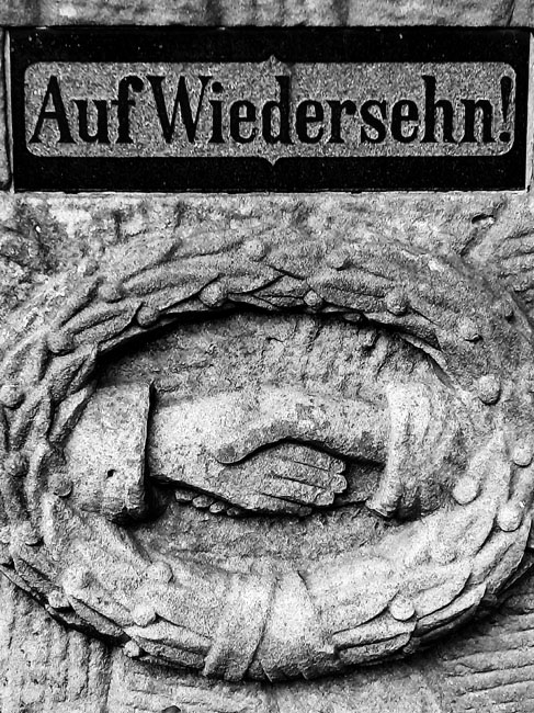 Im festen Glauben an die Wiederauferstehung verabschieden sich die Verstorbenen auf ihren Grabsteinen mit Handschlag und einem ´Auf Wiedersehn´.