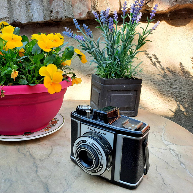 Diese zu Beginn der Produktion schlichteren Box-Kameras waren in den 50ern des letzten Jahrhunderts, der Zeit des beginnenden Aufbruchs ins Wirtschaftswunder der Bundesrepublik, ein erstrebenswerter Luxusartikel, um die persönlichen Errungenschaften der einzelnen Bewohner zuerst in schwarz-weiß Fotos und dann in Farbe in Alben zu dokumentieren. Das Format der Felica war 6x6cm auf 120er Rollfilm. Ein Format, das noch ohne Vergrößerer mittels Kontaktabzügen relativ einfach hergestellt werden konnte und zu hübschen Ergebnissen führte, vor allen Dingen in Chamois, in der weiß-bräunlichen Farbe des Leders der Gemsen, und natürlich mit einem wertigen Büttenrand der Abzüge versehen.