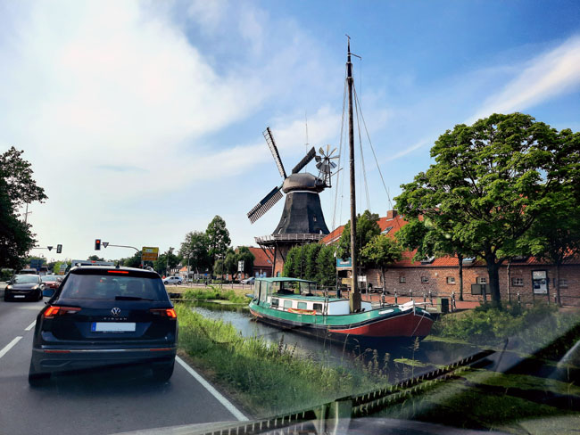 Die zunehmende Bebauung lässt die Ansicht noch nachvollziehen, der Warsingsfehnkanal hat vom Volumen her abgenommen, die landschaftsbestimmenden Hebebrücken fehlen. Die Bestrebungen, sie wieder herzustellen, sind absolut sinnvoll. Es ist schön, dass die Mühle besteht und sogar betrieben wird. Die zweite Warsingsfehner Mühle existiert leider nur noch aus einem zum Wohnhaus mutierten Fragment.
