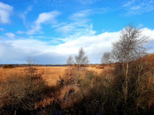 Mit dem Großen Meer ist nicht die Nordsee gemeint, wie zu vermuten, sondern der viertgrößte Binnensee Niedersachsens zwischen Emden und Aurich, ein Naturschutz- und Naherholungsbereich. Das Große Meer ist ein sogenannter Niedermoorsee, dessen Wasserstand 1,40m unter dem Meeresspiegel liegt. Bei meinem Besuch regnete und stürmte es, bevor der Himmel aufriss und die Natur in dezemberlicher Farbpracht schwelgte. Im Sommer überlaufen, fand ich zur späten Herbstzeit auf dem Rundweg Rebhühner und Fasane als Begleitung.