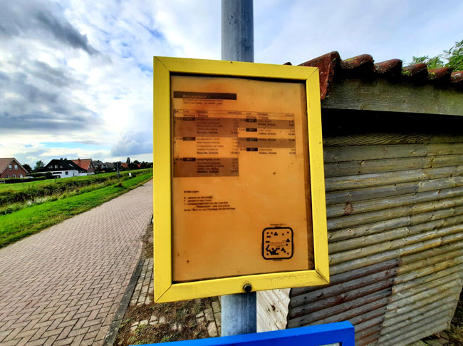 Haltestelle Brückenfehn, rechts Teile des Wartehäuschens