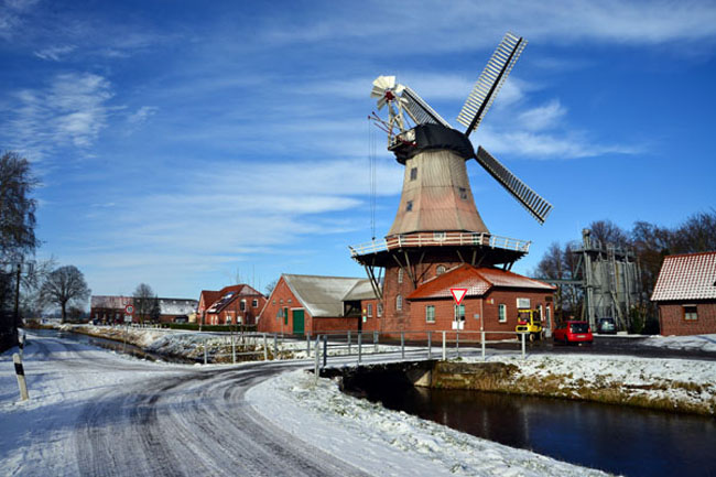 Die Warsingsfehner Mühle heute aus ähnlicher Perspektive