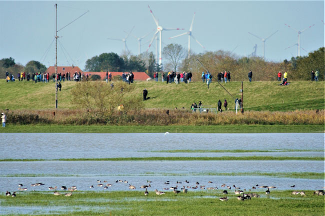Auf den Deichen, hier in Oldersum, freuen sich die Zuschauer über das Spektakel.