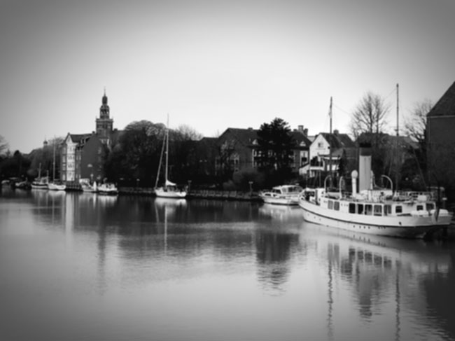 Motiv: Uferansicht Leer von der Nessebrücke aus