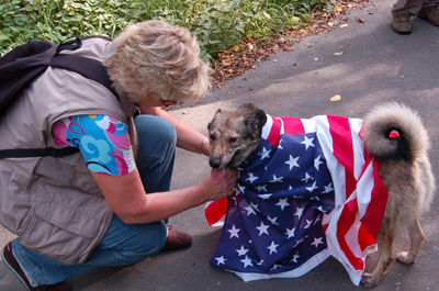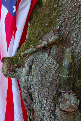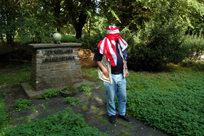ich selbst stelle den erhalt meiner installation vom 4. august fest, zur feier des tages mit solidarischem fahnenschmuck dokumentiert