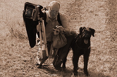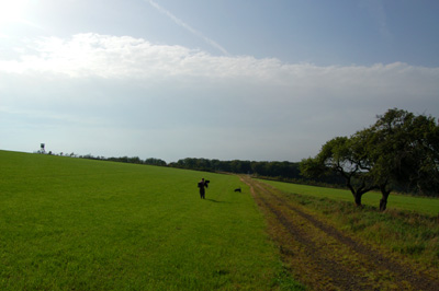 hans-gerd weise arbeitet an seiner rockenfeld fotoserie unter der last sowohl der spätsommerlichen hitze als auch des instrumentariums photograficum in der weite des plateaus vor rockenfeld.