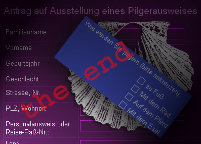 die jahrhundertelang aufgelegten pilger hände haben in der wurzel jesse vertiefungen geschaffen, die begierig meine fingerkuppen aufnehmen, meine rechte hand vereinigt sich mit dem abguss und bildet eine jakobs muschel nach ...... nicht nur hape und harald, auch mein navi und ich sind pilger auf gut bezeichneten wegen ...